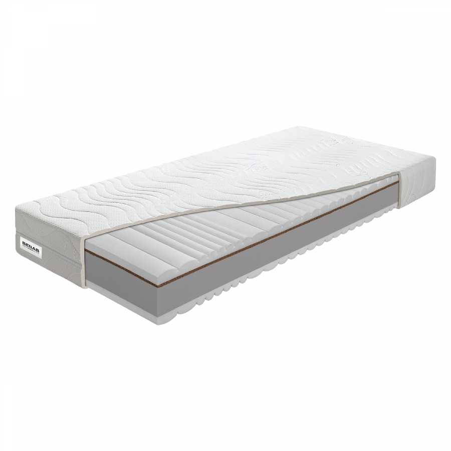 Komfortný ortopedický partnerský matrac s vysoko kvalitnej studenej peny s profiláciou. Matrac je tvorený kombináciou kvalitných HR studených pien, vystužením jadra komfortnou PUR penou a prírodnou kokosovou vrstvou. • prierez HR pien zabezpečuje dokonalé prevzdušnenie, optimálnu regeneráciu organizmu a zaisťuje uvoľnenie svalstva počas spánku • vynikajúca elasticita a tvarová stálosť matraca • matrac dvojitej tuhosti (odporúčaný pre páry s váhovým rozdielom) • odporúčaný rošt lamelový • štandardné vyhotovenie v poťahu – Silver • HR pena 40 kg/m3, PUR pena 28kg/m3 , kokosová vrstva 1300 gr/m2 Poťah - SILVER • kvalitný a príjemne mäkký poťah so schopnosťou regenerácie pokožky ľudského tela • STRIEBRO je ideálne pri alergii na prach a pri problémoch s nadmerným potením, má antistatické, antibakteriálne, antimykotické vlastnosti, ktoré zabraňujú rastu plesní, vlastnosti tejto látky tak zaručujú vynikajúcu hygienu • certifikovaný a zdravotne nezávadný OEKO-TEX štandard • odzipsovateľný a prateľný do 60 °C • zloženie: 7% sim, 30% viskóza, 70% polyester, poťah zónovo prešitý s klimatizačnou výplňou, PES vláknom 250 gr/m2