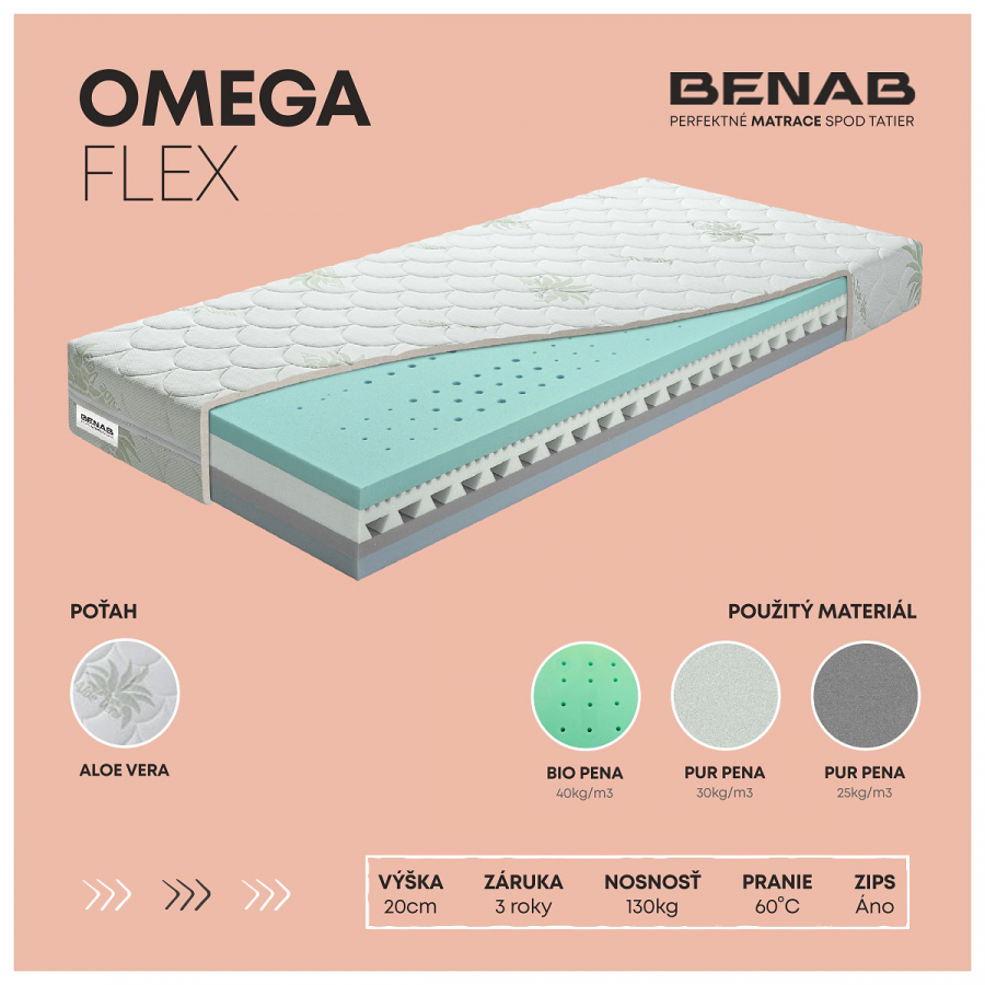 Extra pohodlný a vysoký matrac z elastickej BIO peny so špeciálnym 7-zónovým odvetrávaným systémom. • obojstranne použiteľný / obojstranne komfortný • matrac a jeho skladba zabraňuje prehriatiu organizmu a tým zvyšuje komfort počas spánku • odporúčaný rošt lamelový • štandardné vyhotovenie v poťahu – Aloe Vera • BIO pena 40 kg/m3, PUR pena 30 kg/m3, PUR pena 25 kg/m3 Poťah - ALOE VERA • poťahová látka s výťažkami z tejto rastliny obsahuje prevažne enzýmy, minerálne látky a aminokyseliny, ktoré veľmi pozitívne pôsobia na pokožku a posilňujú relaxačné účinky spánku • príjemne mäkký poťah so schopnosťou regenerácie pokožky ľudského tela, vlastnosti tejto látky zaručujú dostatočnú hygienu • certifikovaný a zdravotne nezávadný OEKO-TEX štandard • zloženie: 85 % polyester; 15 % viskóza, obohatený o výťažky z aloe vera, poťah prešitý s klimatizačnou výplňou, PES vláknom 250 gr/m2 • antibakteriálny, antiroztočový, odzipsovateľný a prateľný do 60°C