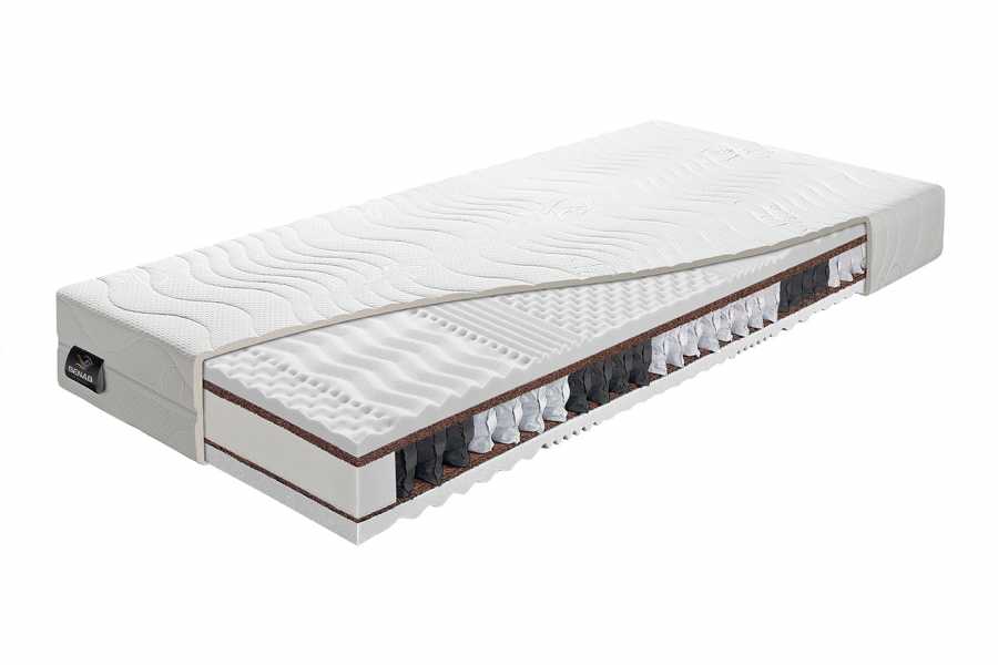 Matrac Fyzio Coco Plus je vysoký 27 cm a predstavuje kombináciu komfortu a pevnej opory vďaka kvalitnému taštičkovému jadru. Jadro matraca tvorí 7-zónová taštičková pružina, ktorá zabezpečuje anatomickú podporu a presné prispôsobenie sa telu, čím pomáha udržiavať správnu polohu chrbtice počas spánku.