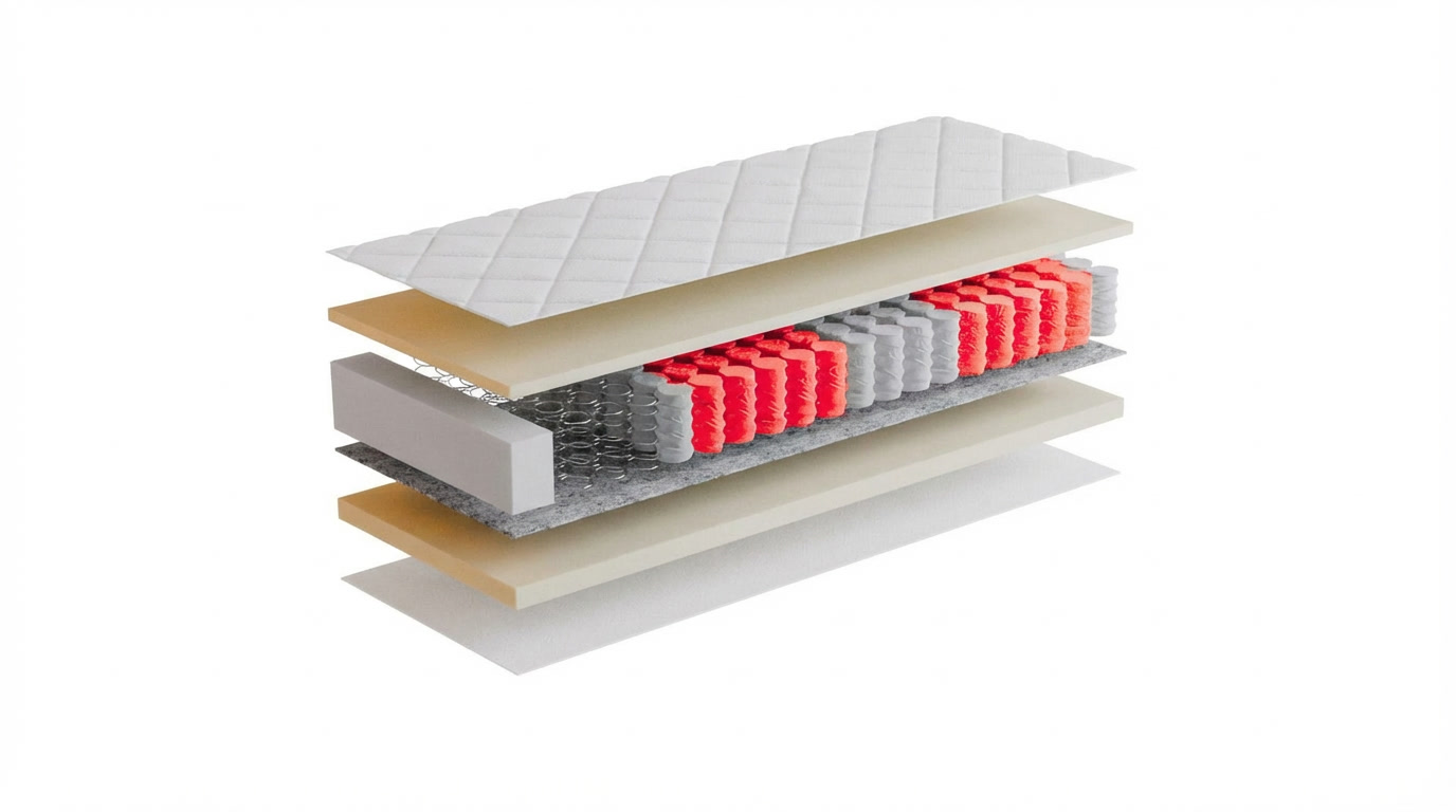Jadro matraca tvorí kombinácia modernej PUR peny s hustotou 38kg/m³ a taštičkových pružín (STANDART POCKET), čo zabezpečuje skvelú flexibilitu a prispôsobenie sa tvaru tela. PUR pena sa optimálne prispôsobuje krivkám vášho tela a zároveň ponúka vynikajúcu priedušnosť, ktorá pomáha udržiavať ideálnu teplotu a zamedzuje vzniku vlhkosti, čím vytvára zdravé spánkové prostredie.