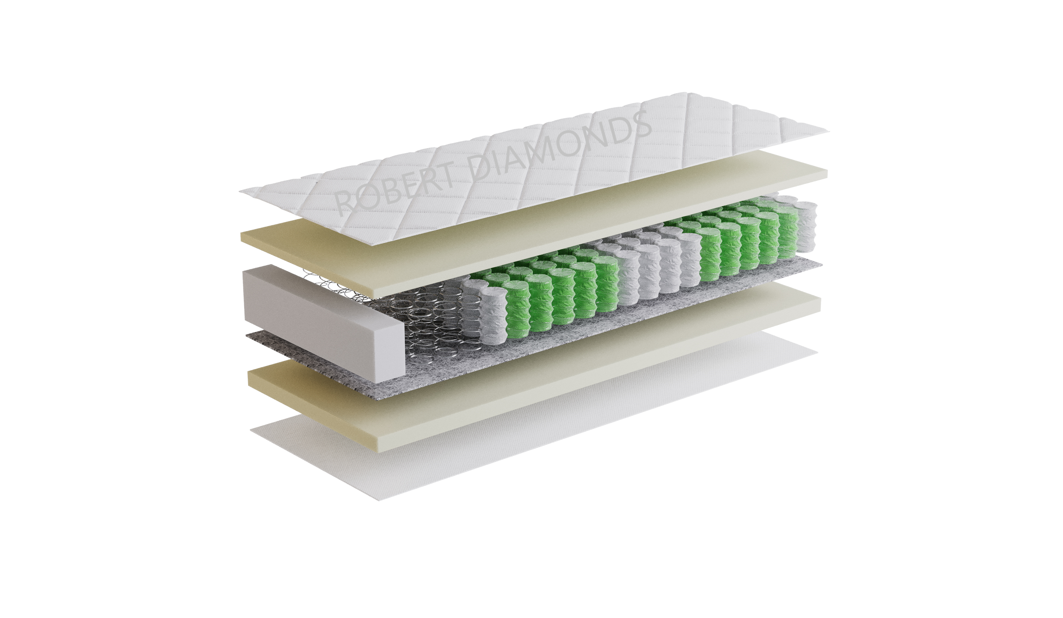 Použitý materiál PUR pena 28 kg/m3, taštičková pružina 250 ks/m2