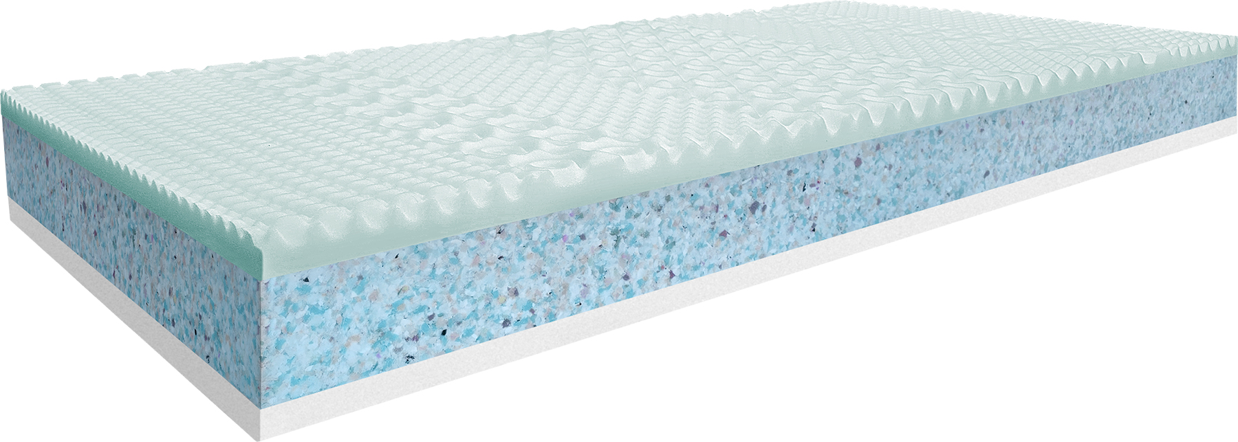 Použitý materiál PUR 7 zón profil 28 kg/m3, POE/RE pena 70 kg/m3, PUR 28kg/m3