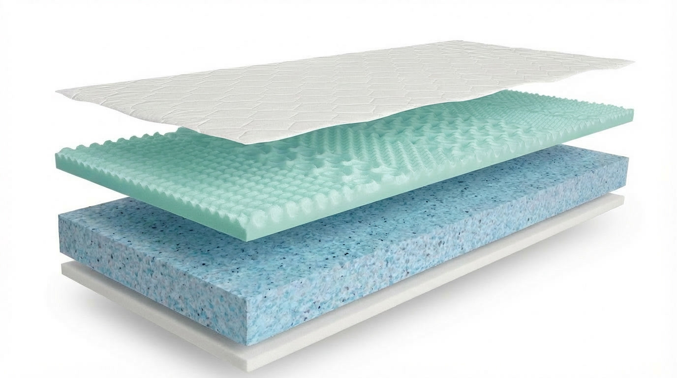 Použitý materiál PUR 7 zón profil 28 kg/m3, POE/RE pena 70 kg/m3, PUR 28kg/m3