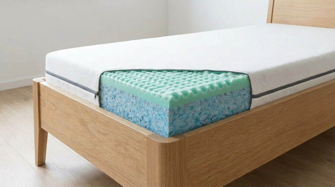 Použitý materiál PUR 7 zón profil 28 kg/m3, POE/RE pena 70 kg/m3, PUR 28kg/m3