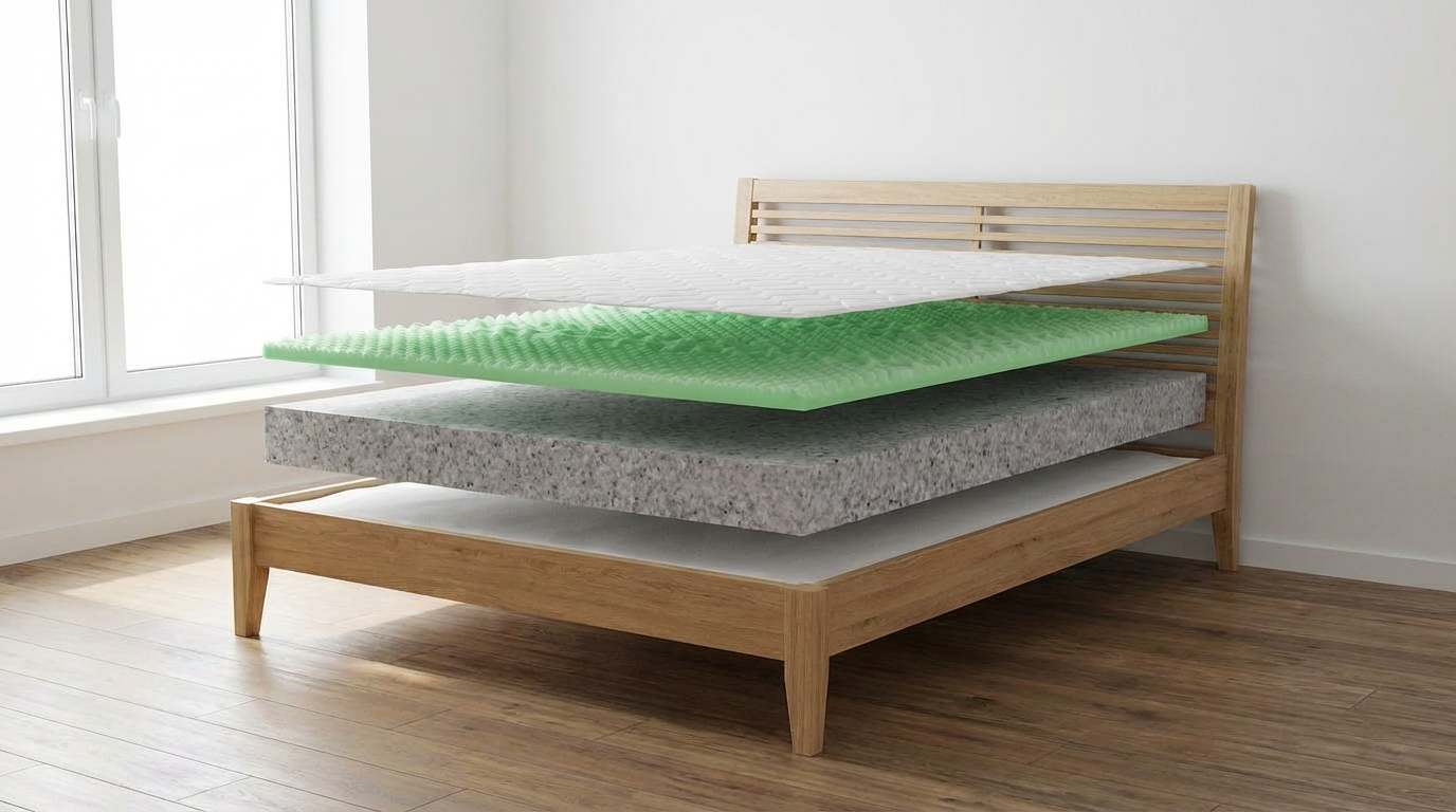 Použitý materiál PUR 7 zón profil 35 kg/m3, POE/RE pena 70 kg/m3, PUR 35 kg/m3