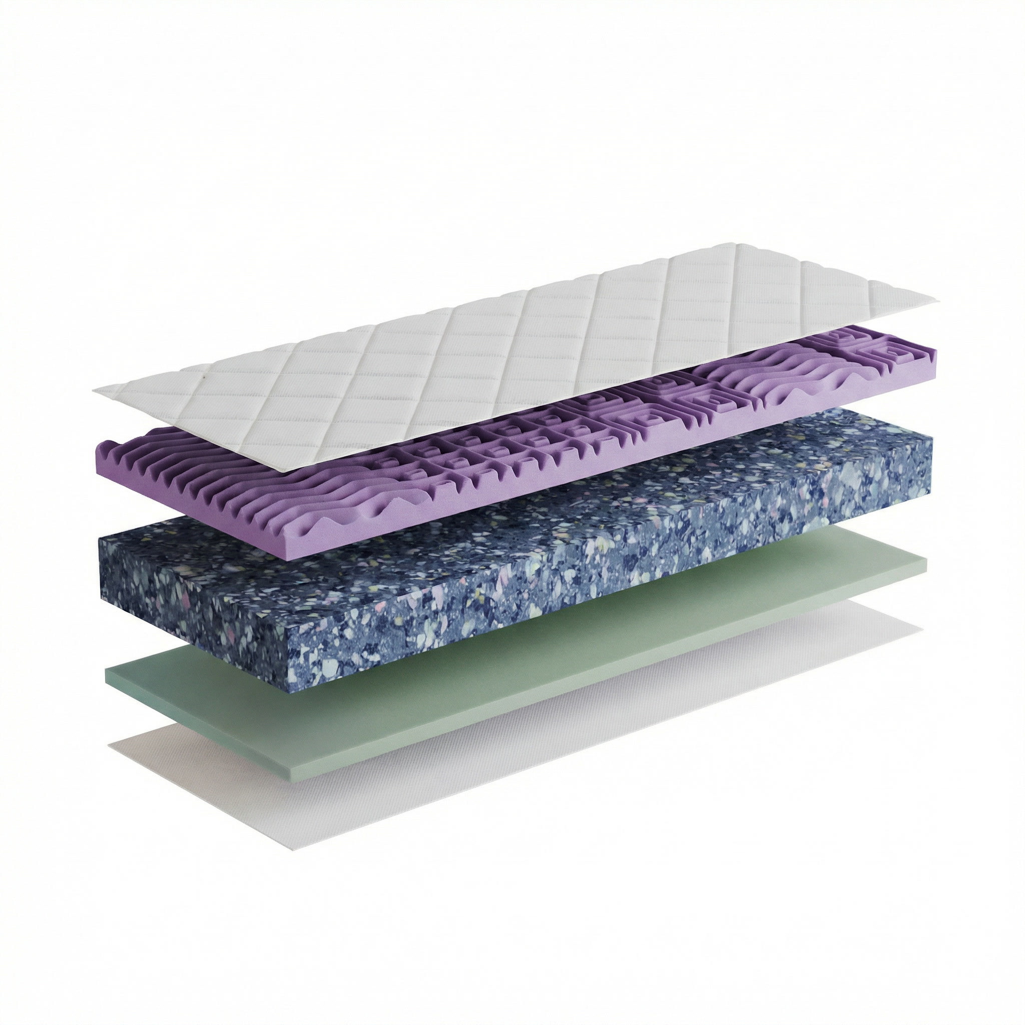 POE/RE PENA RE pena je recyklovaná drvená polyuretánová pena a vyrába sa spájaním rôznych materiálov pod silným tlakom. RE pena dodáva matracom vyššiu tuhosť a teda aj nosnosť.