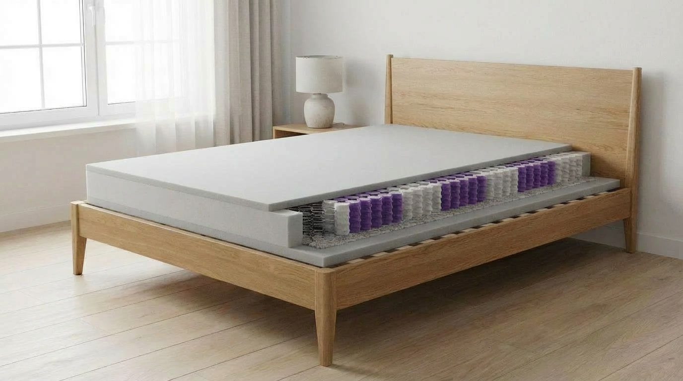 Použitý materiál PUR pena 30 kg/m3, taštičková pružina 250 ks/m2
