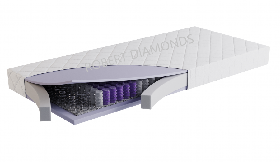 Použitý materiál PUR pena 30 kg/m3, taštičková pružina 250 ks/m2