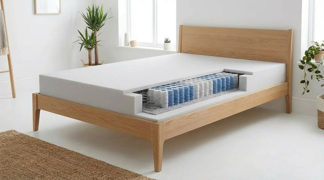 Použitý materiál PUR pena 38 kg/m3, taštičková pružina 250 ks/m2