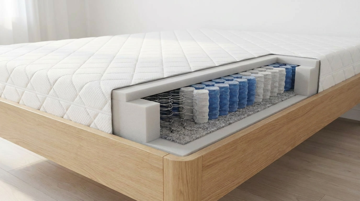 Jadro matraca tvoria samostatné taštičkové pružiny, ktoré presne kopírujú tvar tela a zabezpečujú správnu ortopedickú oporu chrbtici. Tento systém rovnomerne rozkladá tlak na telo, čo pomáha zmierniť svalové napätie a prispieva k zdravému a pokojného spánku.
