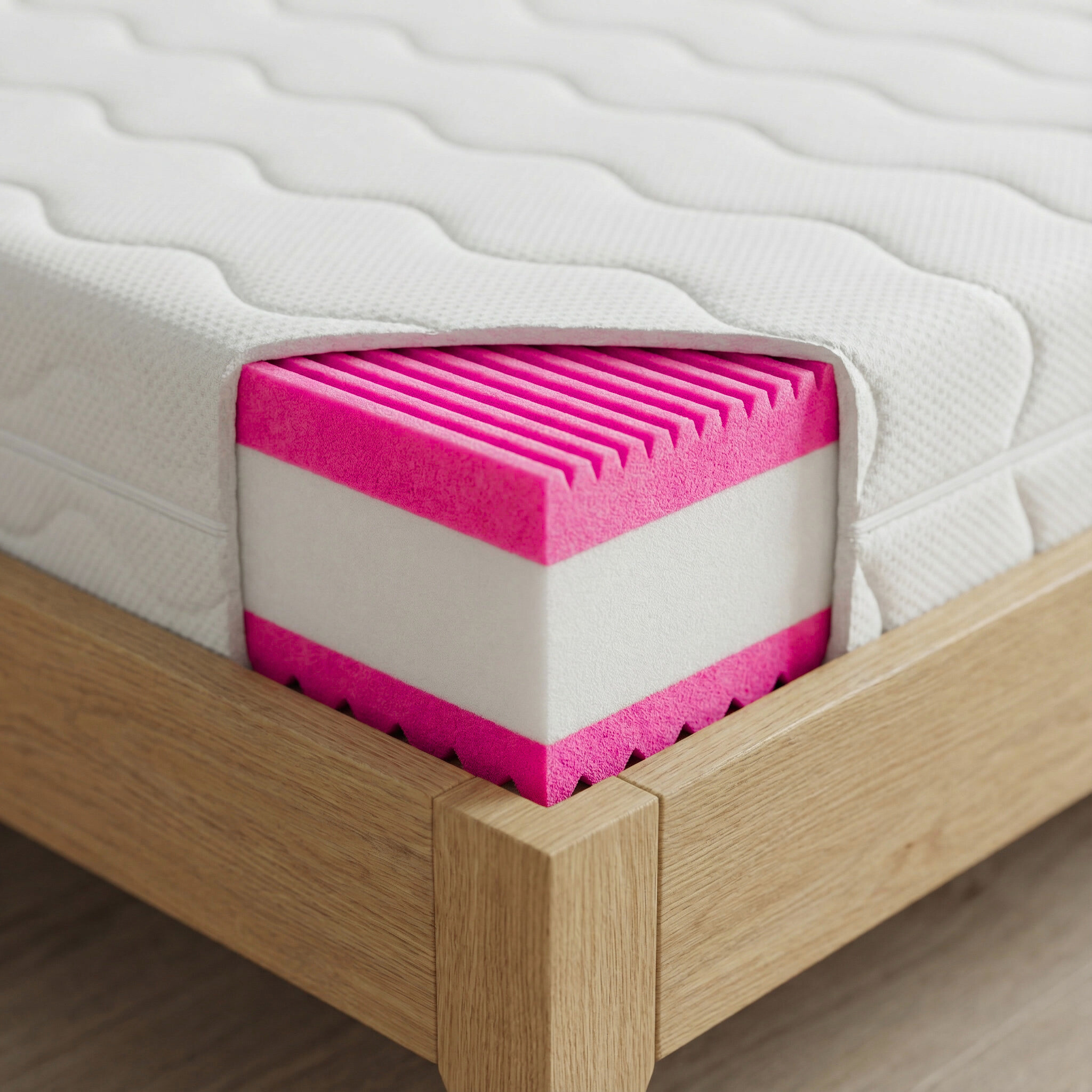Obojstranná konštrukcia so stupňami tuhosti 3 a 4 ponúka možnosť výberu – jedna strana poskytuje strednú tvrdosť, druhá je pevnejšia. Tento praktický detail umožňuje lepšie prispôsobenie matraca vašim aktuálnym potrebám a zároveň predlžuje jeho životnosť.