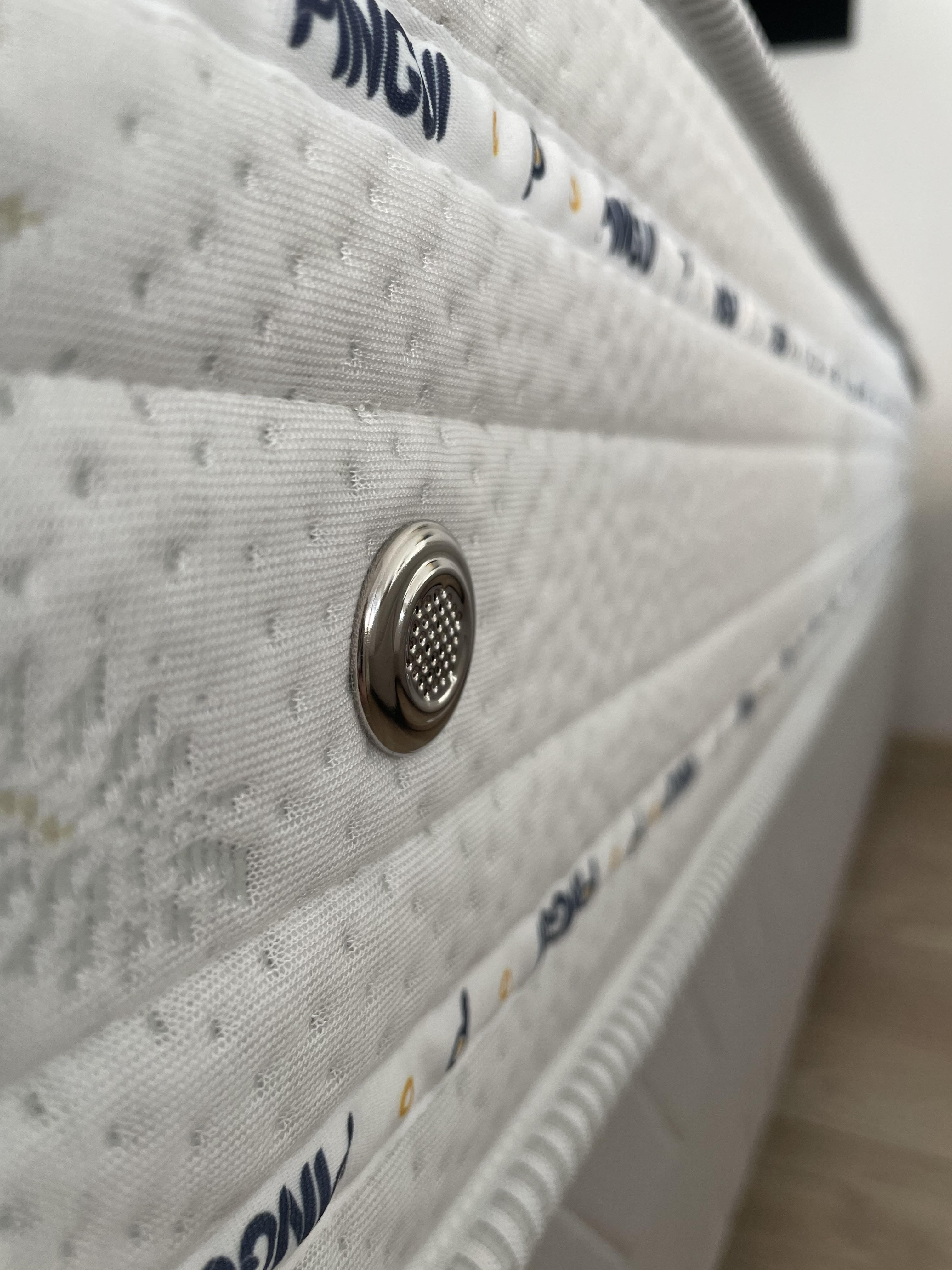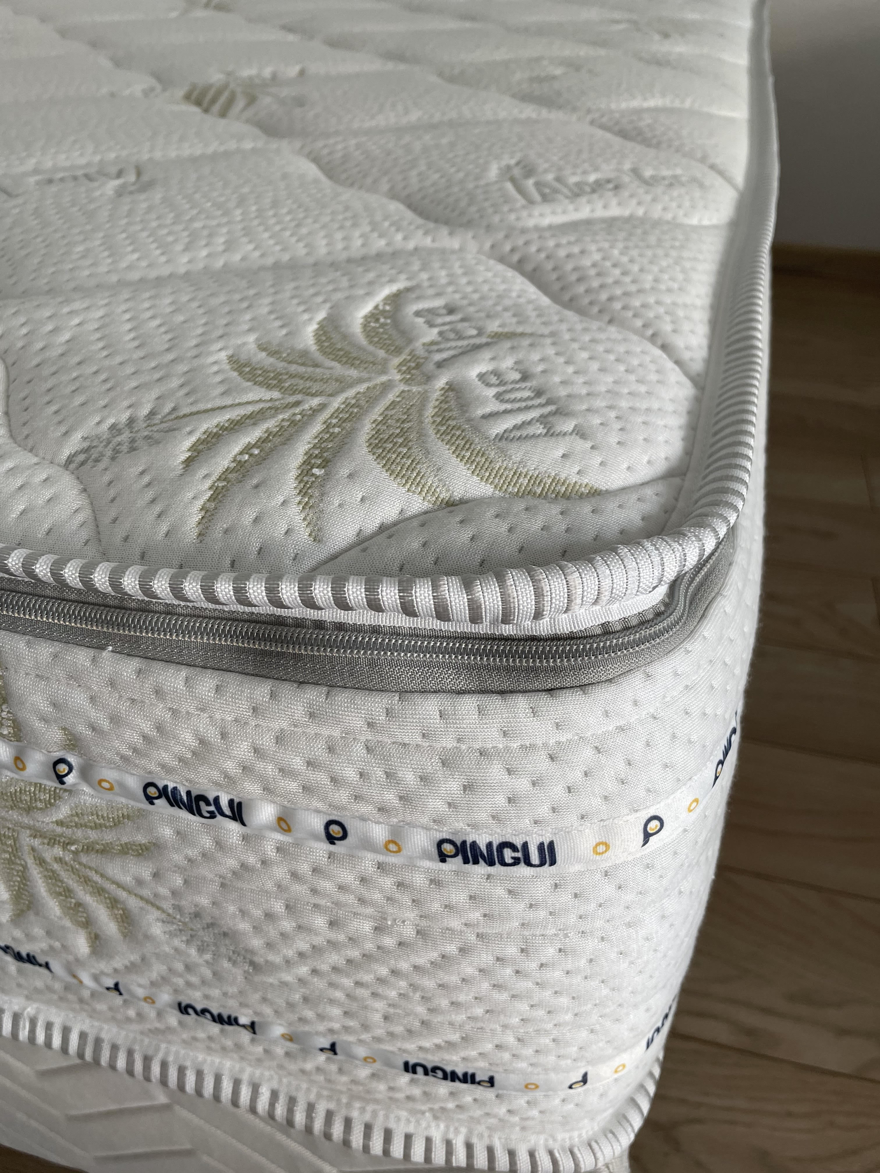 Tento ručne šitý špičkový matrac má poťahovú látku Aloe vera z oboch strán, s výťažkami z tejto rastliny obsahuje prevažne enzýnmi a mineralné látky, ktoré veľmi priaznivo pôsobia na pokožku, je certifikovaný a zdravotne nezávadný, spĺna normy kvality OEKO-TEX štandard. Je odzipsovateľný a prateľný na 40°C, po obvode sú umiestnené otvory na dokonale odvetranie matraca, taktiež si všimnete aj 2 ozdobne pásiky s nápisom PINGUI.