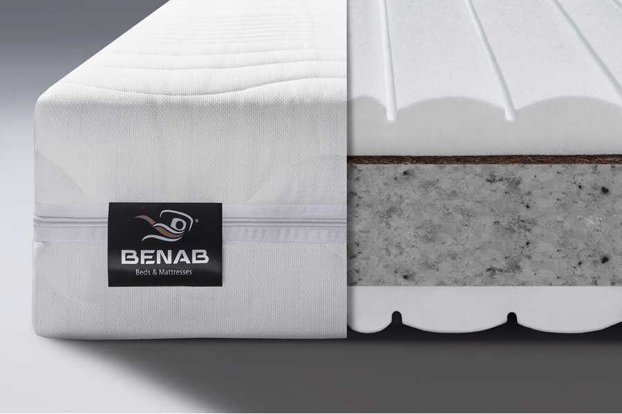 Jadro matraca tvorí kombinácia vysokohustotnej POE/RE peny s hustotou až 70 kg/m³, ktorá zaručuje dlhodobú tvarovú stálosť, nosnosť a odolnosť aj pri vyššom zaťažení. Tvrdšia strana matraca je vystužená kokosovou vrstvou, ktorá zvyšuje tuhosť, zlepšuje vzdušnosť a odolnosť voči vlhkosti, čo je ideálne najmä v teplejších mesiacoch.