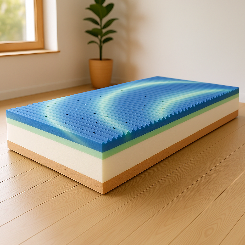 Použitý materiál PUR pena 30 kg/m3, HR pena 38 kg/m3, HYBRID 50 kg/m3