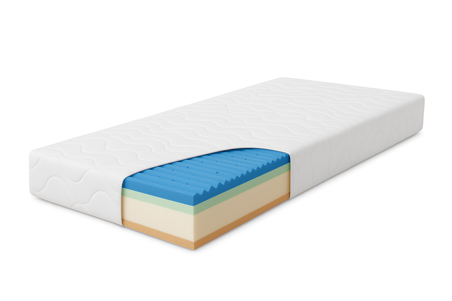 Použitý materiál PUR pena 30 kg/m3, HR pena 38 kg/m3, HYBRID 50 kg/m3