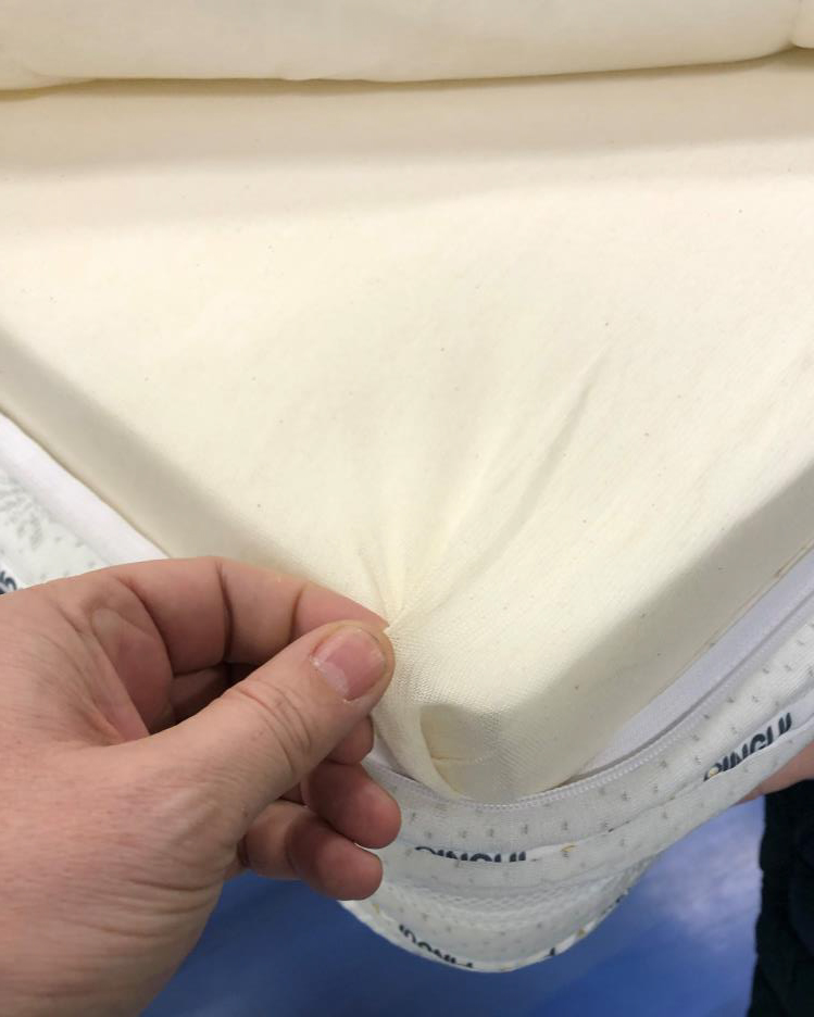 Poťah 1: látka Aloe Vera prešívaná 2 cm vrstvou pamäťovej peny Sonnocell® Visco Memory s Termo vláknom 250g/m2 a TNT textíliou 15g/m2 a etiketou s ošetrujúcimi symbolmi