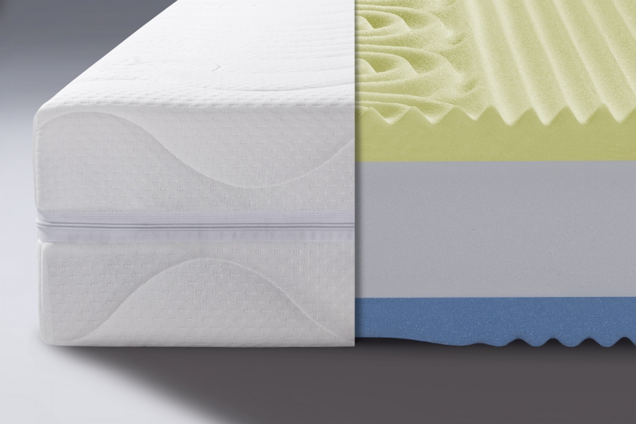 Vrchná vrstva matraca je vyrobená z pamäťovej VISCO peny s hustotou 52 kg/m³ a profilovaním do 7 anatomických zón. Táto pena reaguje na teplo a tlak, výborne sa prispôsobí tvaru tela, zmierňuje tlakové body a podporuje zdravé prekrvenie počas spánku. Vnútorné jadro tvorí PUR pena s hustotou 38 kg/m³, ktorá zabezpečuje stabilitu, odolnosť a rovnomernú oporu chrbtice. Druhá strana matraca je taktiež tvarovaná do 7 zón, čo zaručuje dobrú priedušnosť a ergonomickú oporu aj pri vyššej tuhosti.